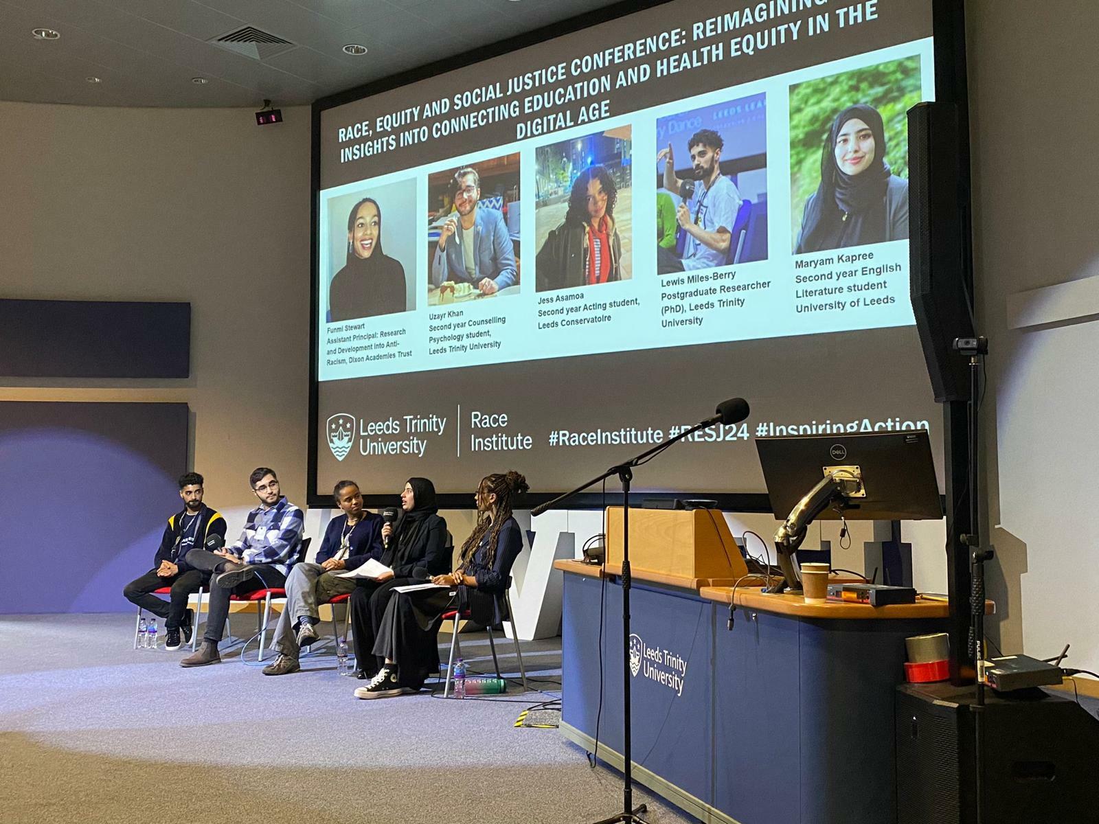 On Wednesday, Dixons Academies Trust were represented at Leeds Trinity University's Race, Equity and Social Justice Conference. Funmi Stewart, Trust AP for Research and Development for Anti-Racism, and Maryam Kapree, Dixons Trinity Academy alumnus were part of a panel discussing the lived experiences of racism which students experience. They were joined by Uzayr Khan, another Dixons Trinity alumnus, and Haris Ahmed, a Dixons City alumnus who delivered a fantastic piece of spoken word poetry. It was wonderful to see so many members of Team Dixons fighting for change. Well done Team Dixons!